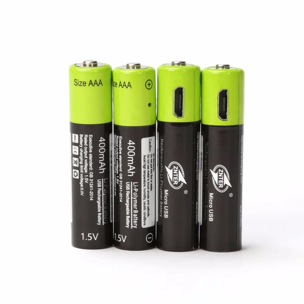 4PCS Mirco USB Rechargeable Battery AAA Battery 400mAh AAA 1.5V Toys Remote controller batteries Lithium Polymer Battery